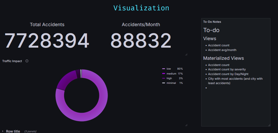 My first instinct was to do SELECT COUNT(*) FROM accidents GROUP BY severity, which wouldn’t be wrong, but I needed each severity group to have a different name (so I could then edit them separately on Grafana, change colors, labels and so on).